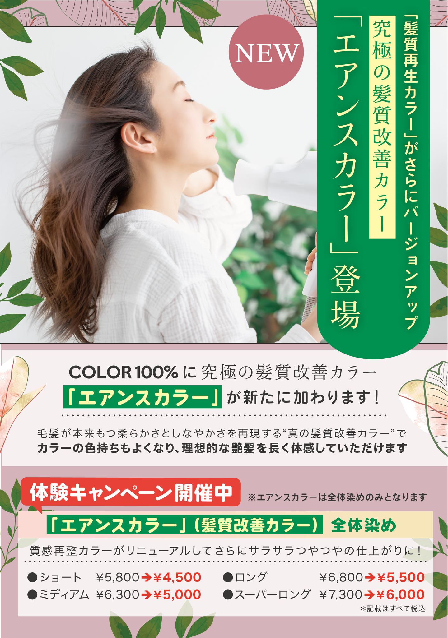 カラー100パーセントは白髪染め以外のカラーリングはございません